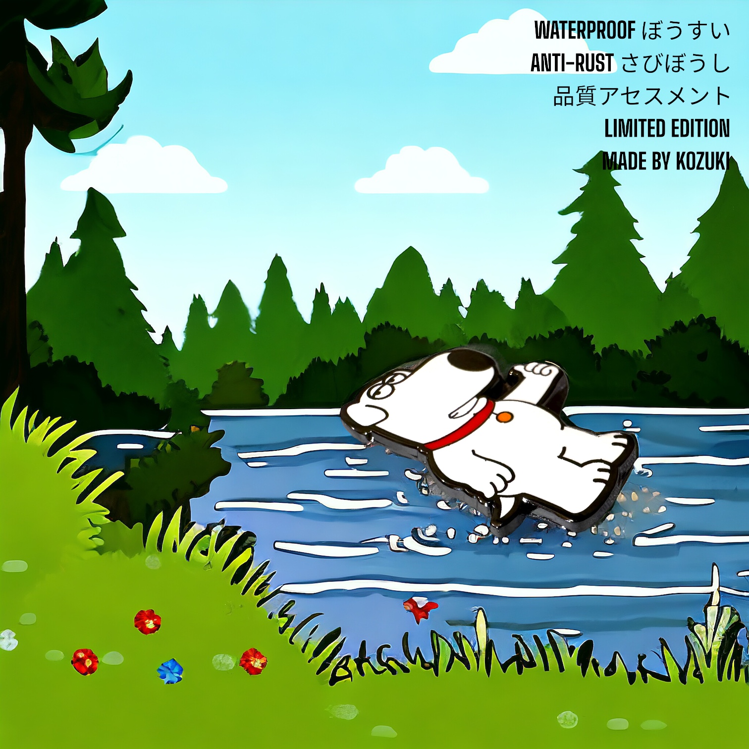 This handmade Family Guy pin enamel brings Brian Griffin, the sarcastic yet lovable dog, into a collectible accessory full of character. Each piece is individually hand-colored, giving it a unique finish while maintaining sharp hard enamel detailing and polished metal outlines. With its bold white-and-red color scheme, this pin is perfect for accessorizing jackets, bags, or pin boards. A must-have anime pin collectible and Family Guy gift for fans who appreciate handmade craftsmanship and high-quality design.
