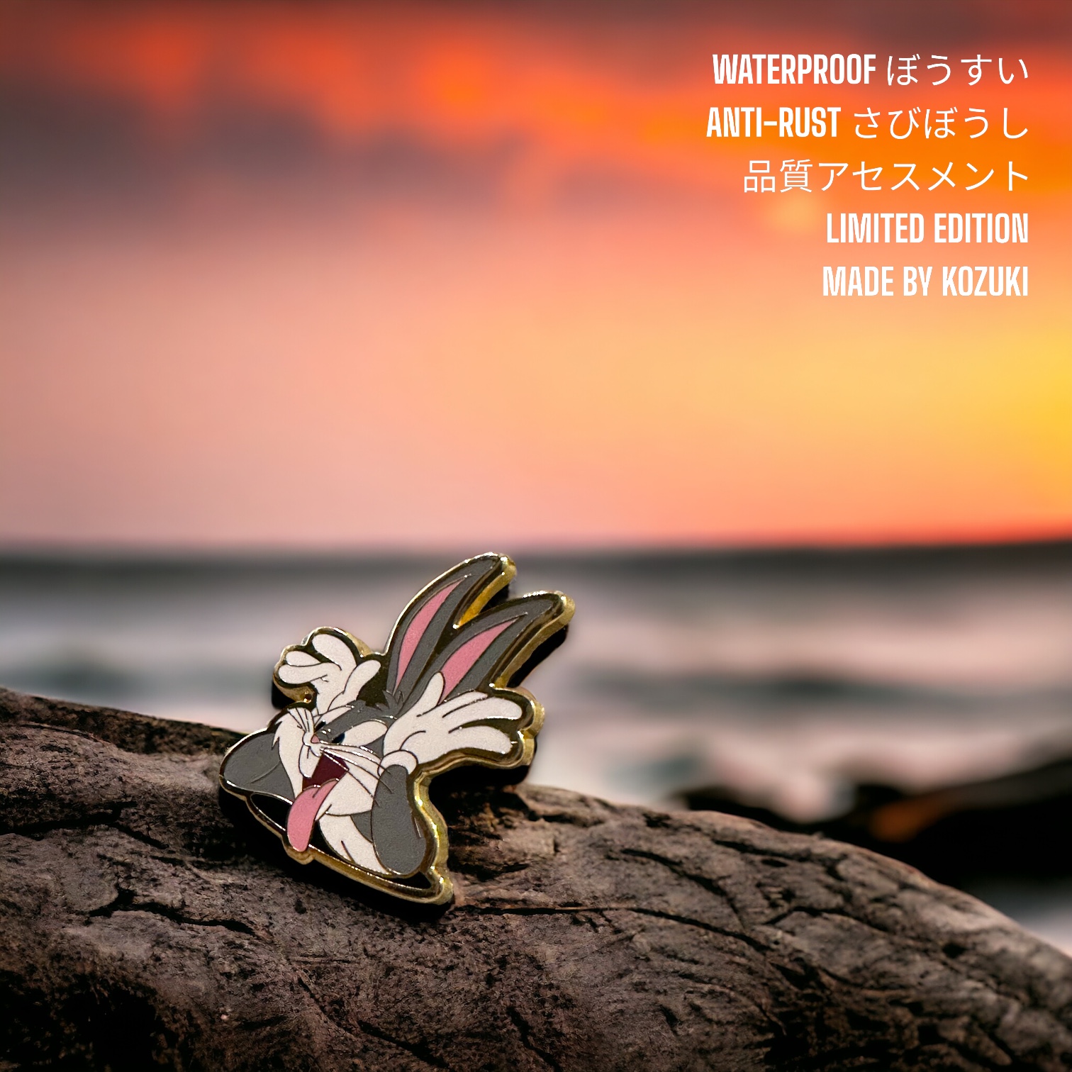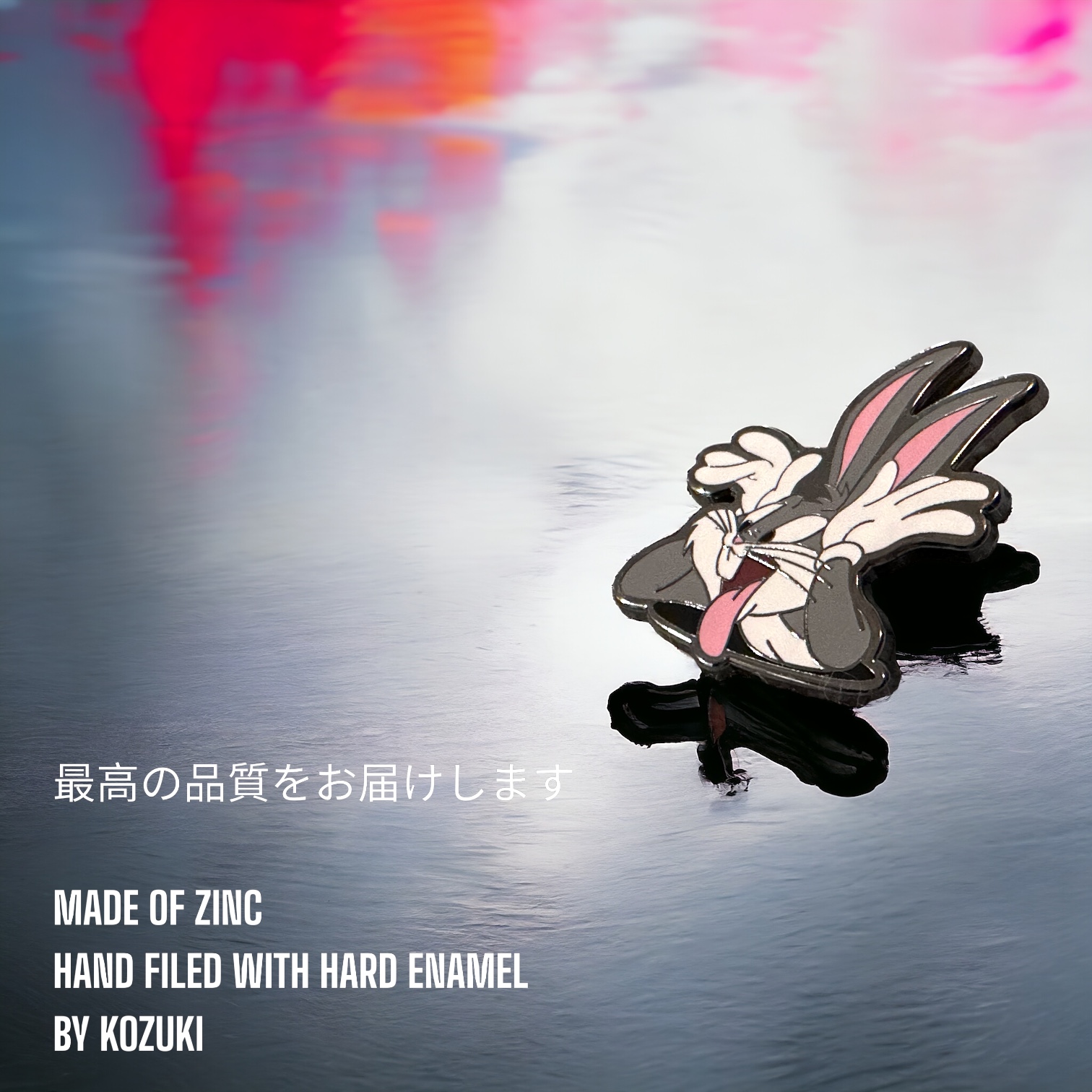 This Looney Tunes pin enamel captures Bugs Bunny in his cheeky tongue-out pose. Crafted with high-quality hard enamel, this Bugs Bunny pins design is perfect for collectors and fans searching for a unique Looney Tunes gift or anime pin collectible.