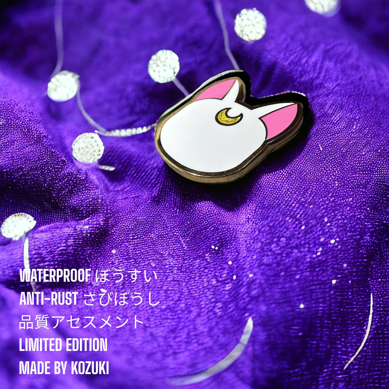 This Sailor Moon pin enamel features the adorable Artemis with his signature crescent moon. A must-have for any fan collecting Artemis pins or searching for a perfect Sailor Moon gift. Crafted for lasting shine, this anime pin collectible elevates your display.