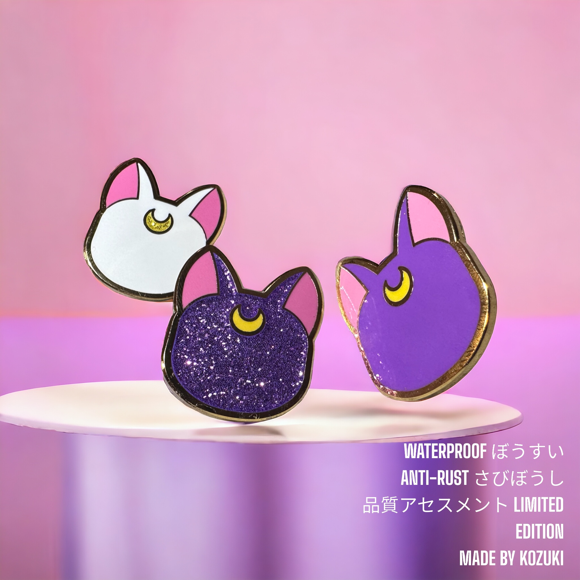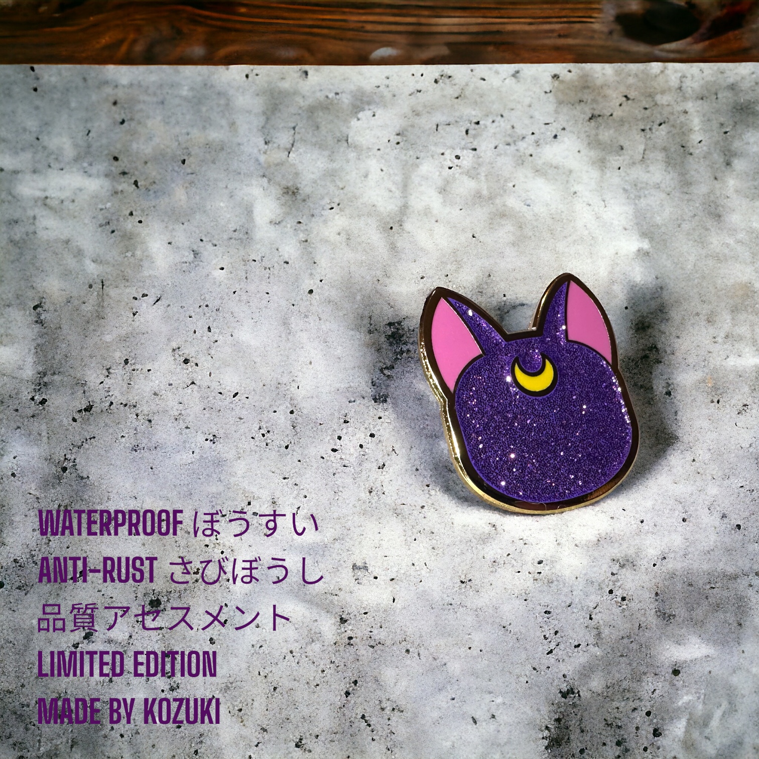 This Sailor Moon pin enamel captures Luna, the magical guardian cat, in a dazzling glitter purple finish. The combination of vibrant color, signature crescent moon, and durable hard enamel makes it a collector’s dream. Whether you’re expanding your set of Luna pins, searching for a meaningful Sailor Moon gift, or hunting for a standout anime pin collectible, this design delivers both charm and craftsmanship. A unique addition to any otaku’s display and an essential for pin enthusiasts.