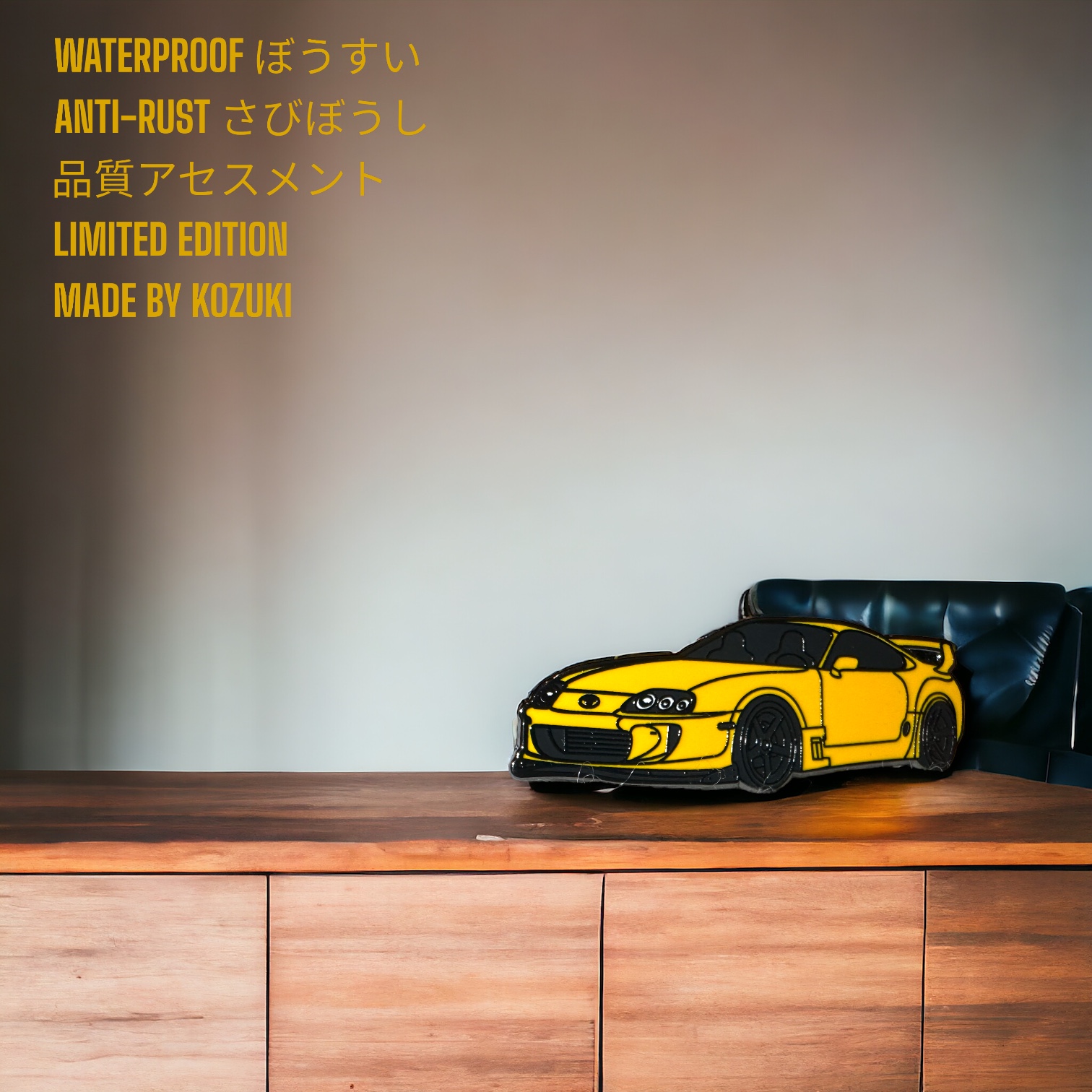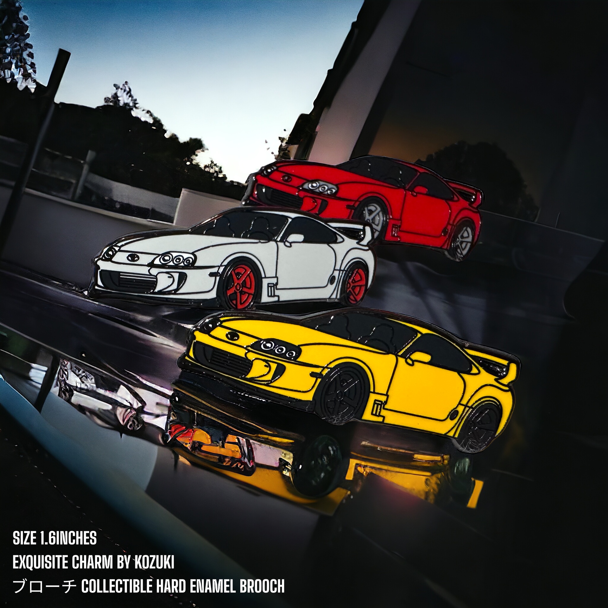 This Toyota Supra pin enamel pays tribute to the timeless MK4 Supra, finished in a striking yellow that captures its street racing spirit. Crafted with durable zinc alloy and filled with smooth hard enamel, it’s built to last while looking amazing on jackets, backpacks, or display boards. Yellow Supra pins like this are perfect for collectors, car enthusiasts, or anyone looking for a unique Toyota Supra gift. Whether for daily wear or part of a display, this anime pin collectible is a must-have for fans of the Supra legend.